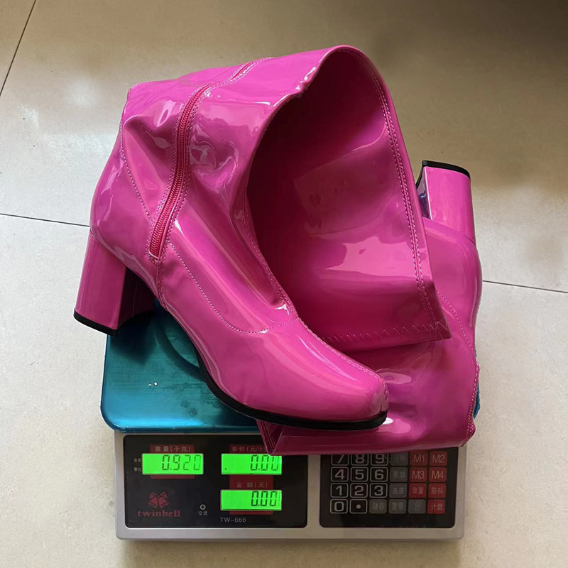 Be the first to review “Patent Leather Stretch Chunky Heel All-matching Middle Boots”